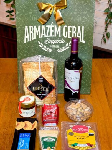 Cesta de Vinho com Aperitivos
